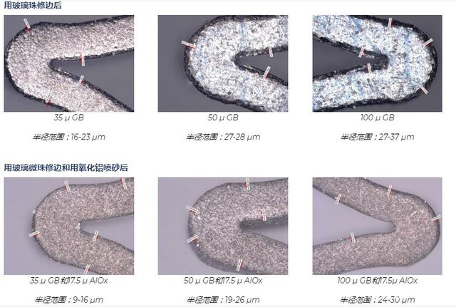 心臟支架、鎳鈦合金支架噴砂機 吉川機械從事噴砂設備研發、設計、銷售、服務已經20多年,行業一直處于領先位置。在醫療行業提供了多種各類醫療產品噴砂設備,比如:強生醫療、巴奧米特、新華醫療、飛渡醫療、史賽克、魚躍醫療等。 吉川機械研發設計的JCK系列精密微型噴砂機 專業處理心臟瓣膜鎳鈦支架上的氧化層,從支架上去除氧化層有手動和自動兩種噴砂系統,處理過程中不會損傷支架本身,不會改變尺寸和形狀,去除氧化層效率可達百分之百,處理后支架表面一致,無顏色誤差,去氧化層效率快,約30秒能處理好一個支架。 經過吉川公司工藝工程師測試,用氧化鋁砂進行定向的噴砂處理可以去除氧化層,平滑表面缺陷并改善外圍支架的表面質量。支架的受損區域很脆,但基礎材料鎳鈦諾卻具有延展性。氧化鋁噴砂磨料使用去氧化層,并且對韌性基體的侵蝕最小,從而在支架撐桿的整個長度上形成均勻的表面光潔度。 市場最新的支架設計和醫療植入物要求更大的邊緣倒圓角。圓形邊緣降低了被植入物卡住,其他風險的可能性。氧化鋁微噴丸的半徑為5-15 m,但新的幾何尺寸指定為接近25 m。該半徑可以通過三種途徑實現:延長噴砂周期,使用更大尺寸的氧化鋁或完全使用其他磨料。通過測試,我們了解到更長的噴砂周期可以去除更多的團塊,而較大尺寸的氧化鋁會產生過于粗糙而無法拋光的表面。畢竟,氧化鋁顆粒的形狀為塊狀,邊緣稍尖。這給了我們一個可行的選擇:嘗試使用其他類型的磨料。為了克服這一障礙,我們測試了幾種類型的介質,發現用玻璃珠噴砂可以在拐角處形成所需的半徑(最大30 m),而不會除去設備的額外質量。結果是氧化鋁的質量提高了十倍。經過吉川公司工藝工程師的測試事實說明了結果的差異。用氧化鋁噴砂處理過的樣品的半徑僅為8-13 m,而用玻璃珠噴砂處理過的樣品的半徑為24-30 m。 經過吉川公司工藝工程師最終測試事實證明,最好的心臟支架噴砂工藝需要用氧化鋁砂粗噴砂、再用玻璃珠微噴砂是目前最好的一種噴砂工藝方式。 經過粗噴、微噴的產品外徑和內徑轉角處的半徑可以實現,而所需的附加材料去除最少。半徑的大小可以有效地控制,因為它是基于圓形磨料,玻璃珠的大小和速度的。可以控制具有附加半徑的支架區域。通過機械加工表面,有助于保持支架的疲勞壽命。玻璃珠磨料通常用于必須保持嚴格公差的噴丸處理應用中。玻璃珠對支架表面進行噴丸處理,不會去除任何材料或數量可忽略不計的材料。如下所示,玻璃珠的尺寸很重要。玻璃珠的尺寸越大;邊緣越圓。玻璃珠有35 ,50 和100 兩種。讓我們看一下使用每種尺寸的樣本測試的結果。此處顯示的未噴砂的支架表面(500x)邊緣鋒利,并受到制造損壞。半徑范圍僅為3-8 m。為什么用兩種磨料處理比單獨用氧化鋁處理好? 玻璃珠無法消除制造過程中產生的浮渣,回彈和其他損壞;只有氧化鋁可以。氧化鋁不能產生真正的圓形邊緣。但是,它確實可以提供電拋光所需的理想表面光潔度。一個不能替代另一個。通過使用多步驟過程,植入物表面可以使用經過驗證的相同設備獲得兩全其美的效果。在該過程中添加第二種研磨劑聽起來可能需要更多的勞動力,但實際上比其他修邊過程更有效。例如,電拋光可以產生較大的半徑,但它也會從整個零件中去除過多的材料,而不僅僅是角部,從而損害了支架的疲勞壽命。